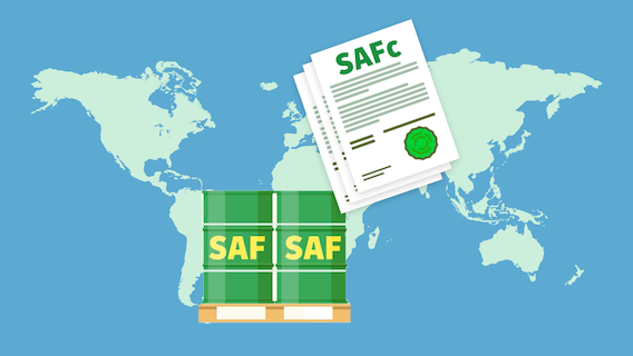 When a sustainable fuel supplier produces Sustainable Aviation Fuel, they generate a certificate based on the quantity of sustainable fuel they make from sustainable sources. When we purchase Sustainable Aviation Fuel, we receive an independently verified certificate through the "Book and Claim" verifying the purchase.