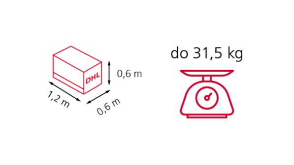 - maximum dimensions of a standard parcel 120 x 60 x 60 cm (if any of the sides exceeds the above-mentioned dimensions, an additional fee is charged for a non-standard element)